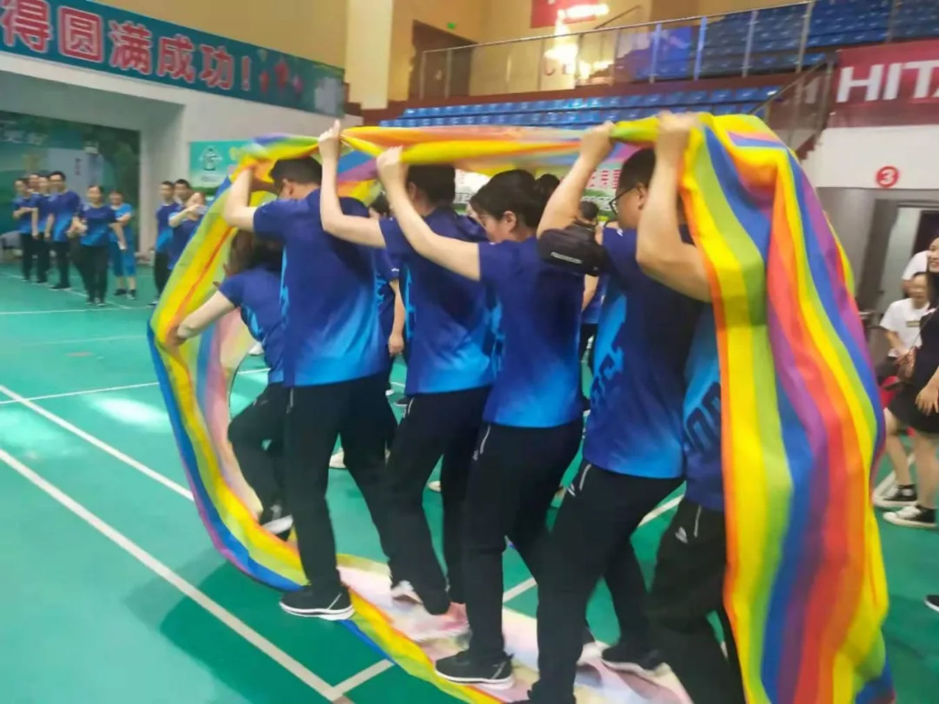 赛场上选手们全神贯注,赛场下观战者呐喊加油助威声响彻健身中心,不管是选手还是观众,他们都尽情的投入到比赛中去,团结互助,积极拼搏的集体荣誉感在此时被体现的淋漓尽致。