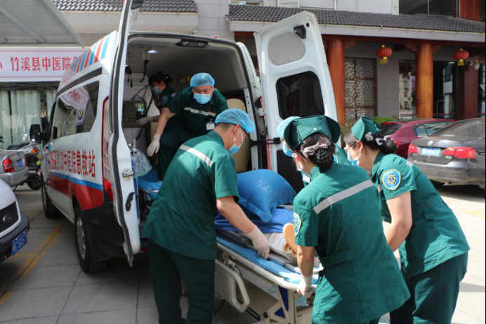 模拟患者被送往县中医院急诊科救治