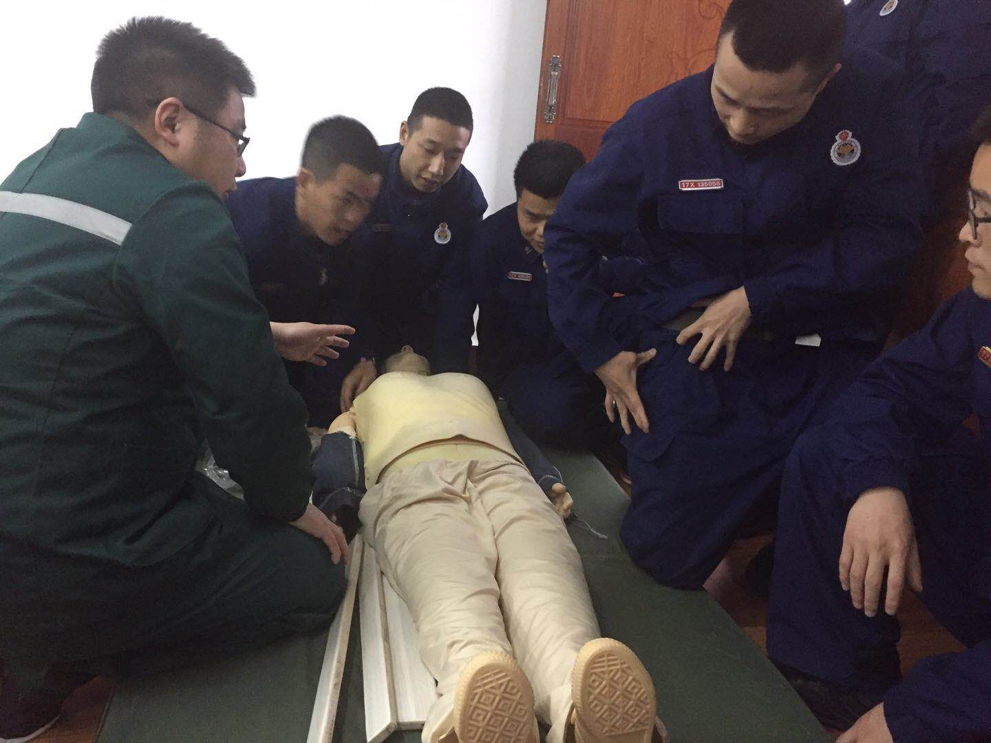 消防员们学习急救技能操作方法
