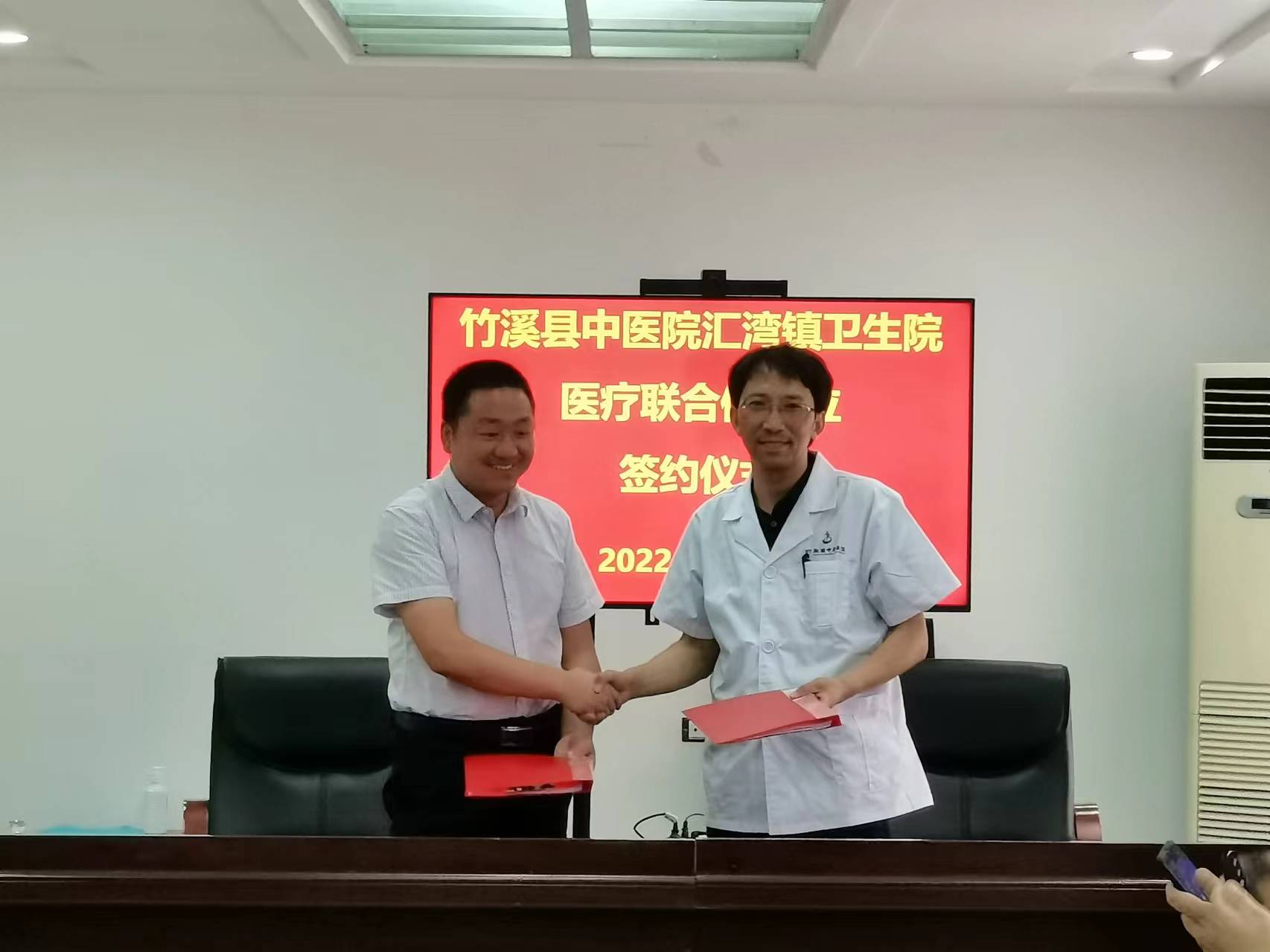8月3日,竹溪县中医院“323”攻坚行动第二十一站走进汇湾镇卫生院,第二组组长余以勇带队开展健康义诊活动,双方签订医联体合作协议。