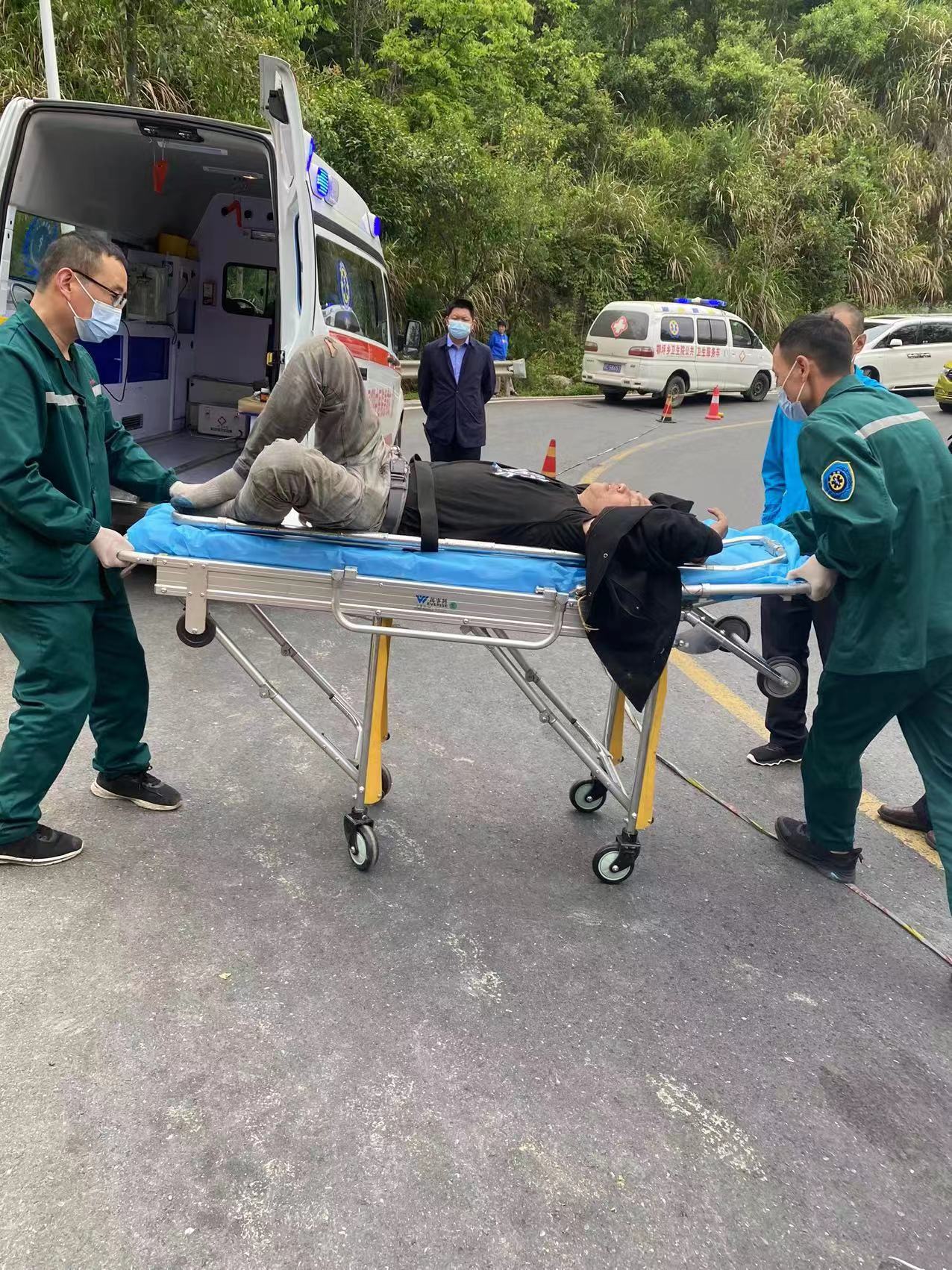 5月9日上午10:40竹溪县中医院急救电话骤然响起、接县120指挥中心调度:鄂坪乡九弯路段车辆侧翻重伤两人,需要我急救站迅速赶往现场开展施救,警情就是命令我中心副主任黄龙波迅速组织医护驾两辆救护车火速赶往现场。