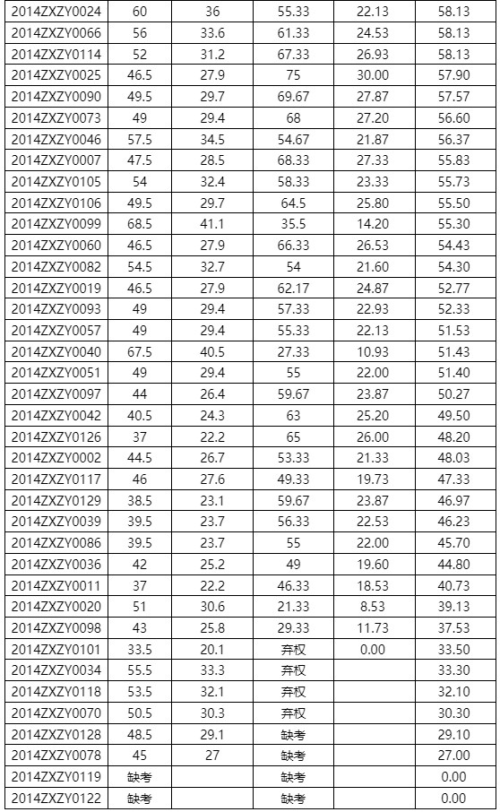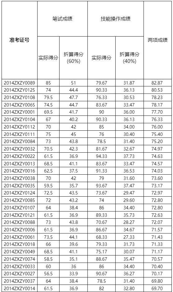 根据《2014年竹溪县中医院公开招聘工作人员公告 》,报考护理人员两项成绩前20名进入面试。 | |||||