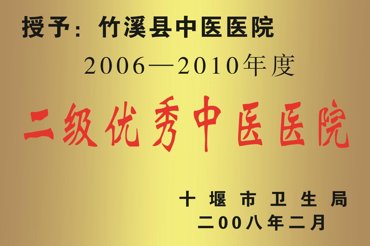 2008年2月18日,我院被十堰市卫生局授予2006—2010年度二级优秀中医医院。