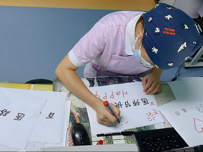 美小护正在手绘祝福语